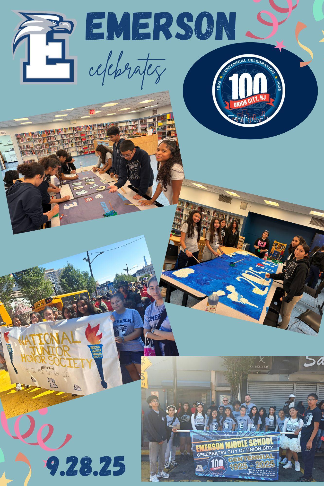 Los líderes estudiantiles de la Escuela Intermedia de Emerson, pertenecientes a la Sociedad Nacional de Honor Juvenil, el Club de Corredores, las porristas y los Jóvenes Marines, celebraron nuestra rica historia en Union City participando en el Desfile del Centenario el domingo 28 de septiembre de 2025 con pancartas en las que trabajaron colaborativamente. ¡Estamos muy orgullosos de nuestros estudiantes!